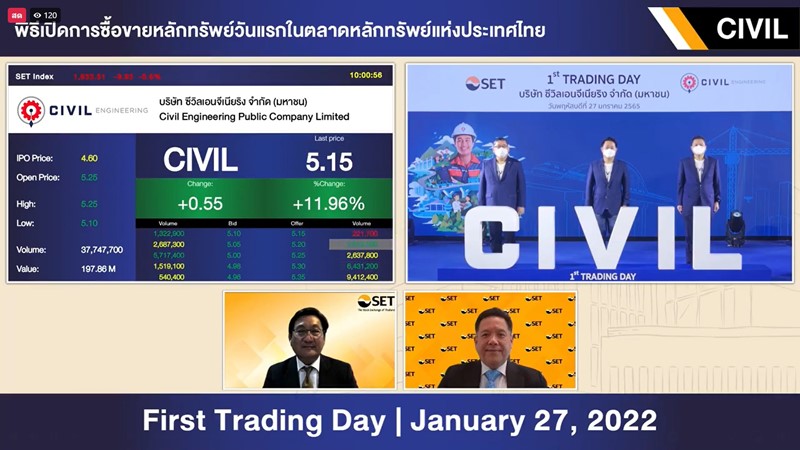 ‘บมจ.ซีวิลเอนจีเนียริง’ หรือ CIVIL เทรดวันแรกเหนือจอง 14.13 %